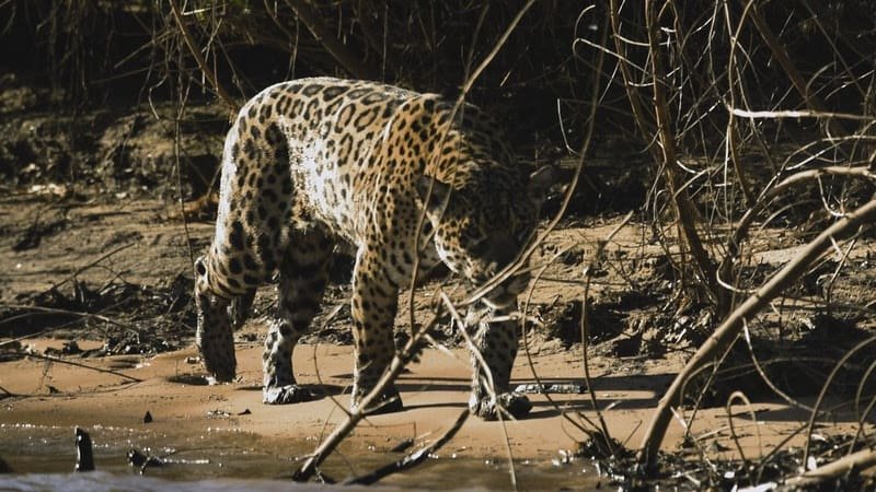 A entrada da galeria exibe uma escultura de onça-pintada da coleção Jaguar Parade, escolhida para representar a potência simbólica do Pantanal e sensibilizar o público para a proteção da fauna local. No interior, projeções em alta definição apresentam paisagens alagadas, ciclos das cheias e registros da vida selvagem, enquanto sons ambientes recriam o amanhecer típico da região.